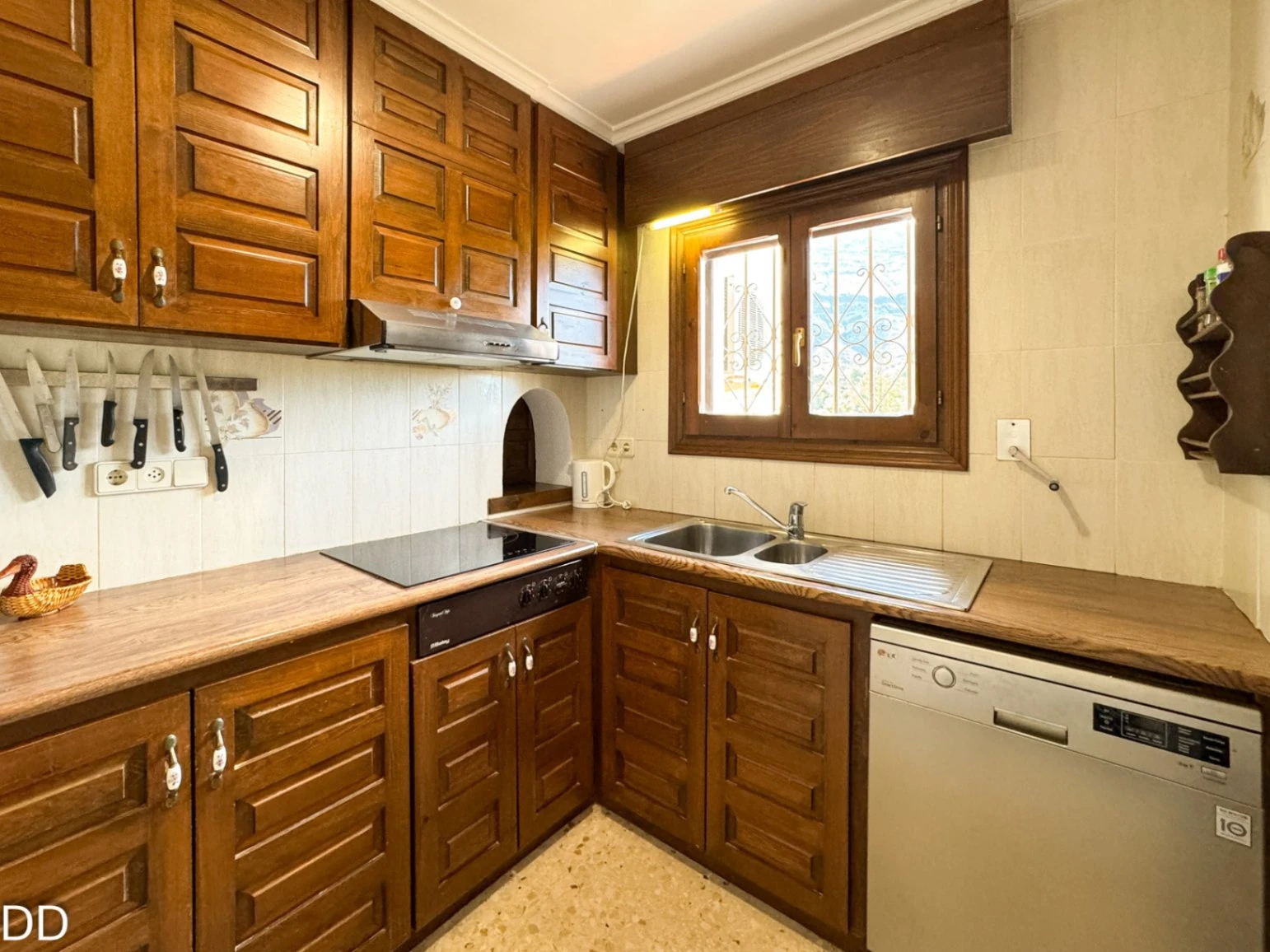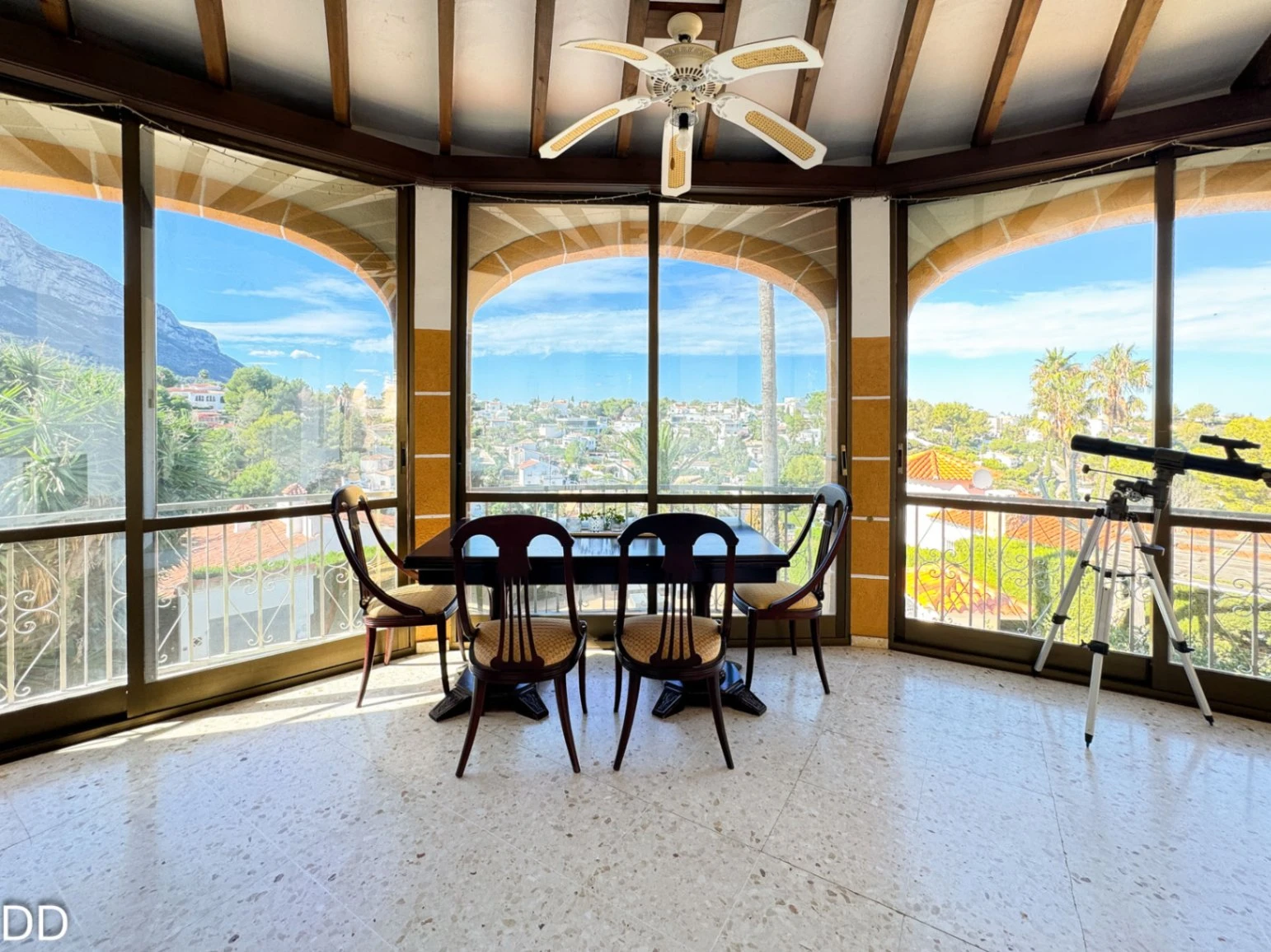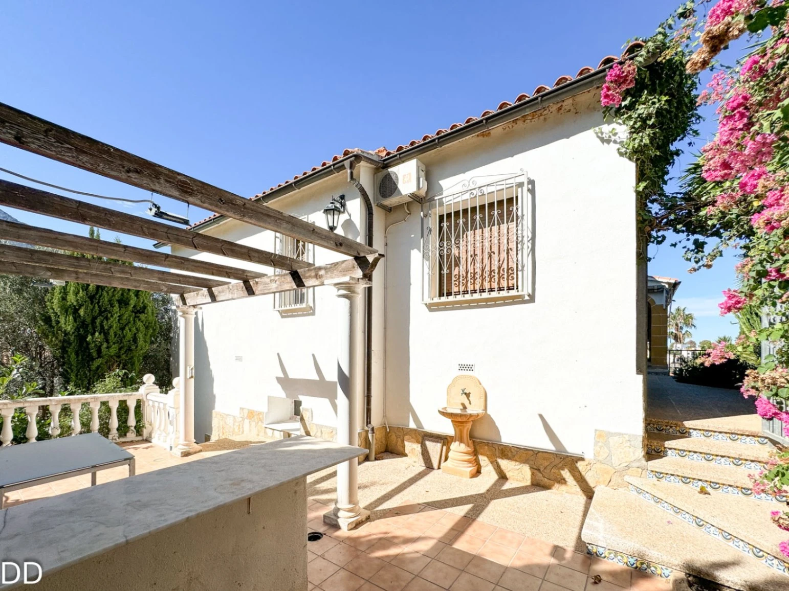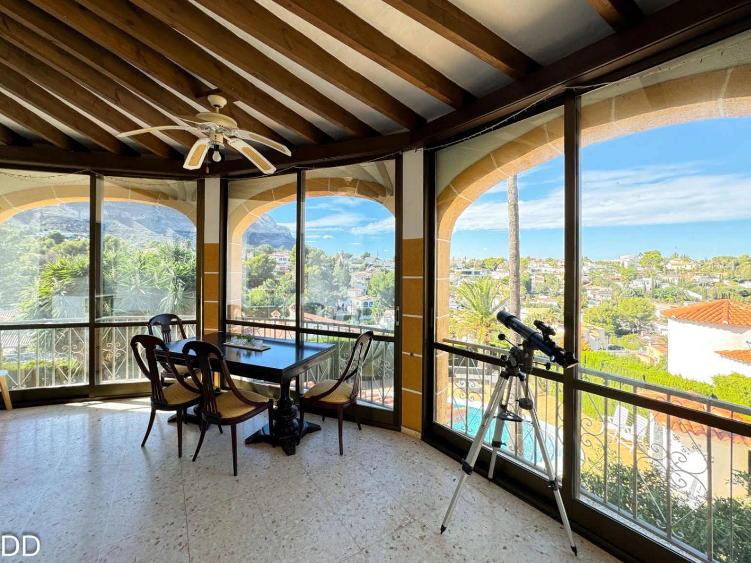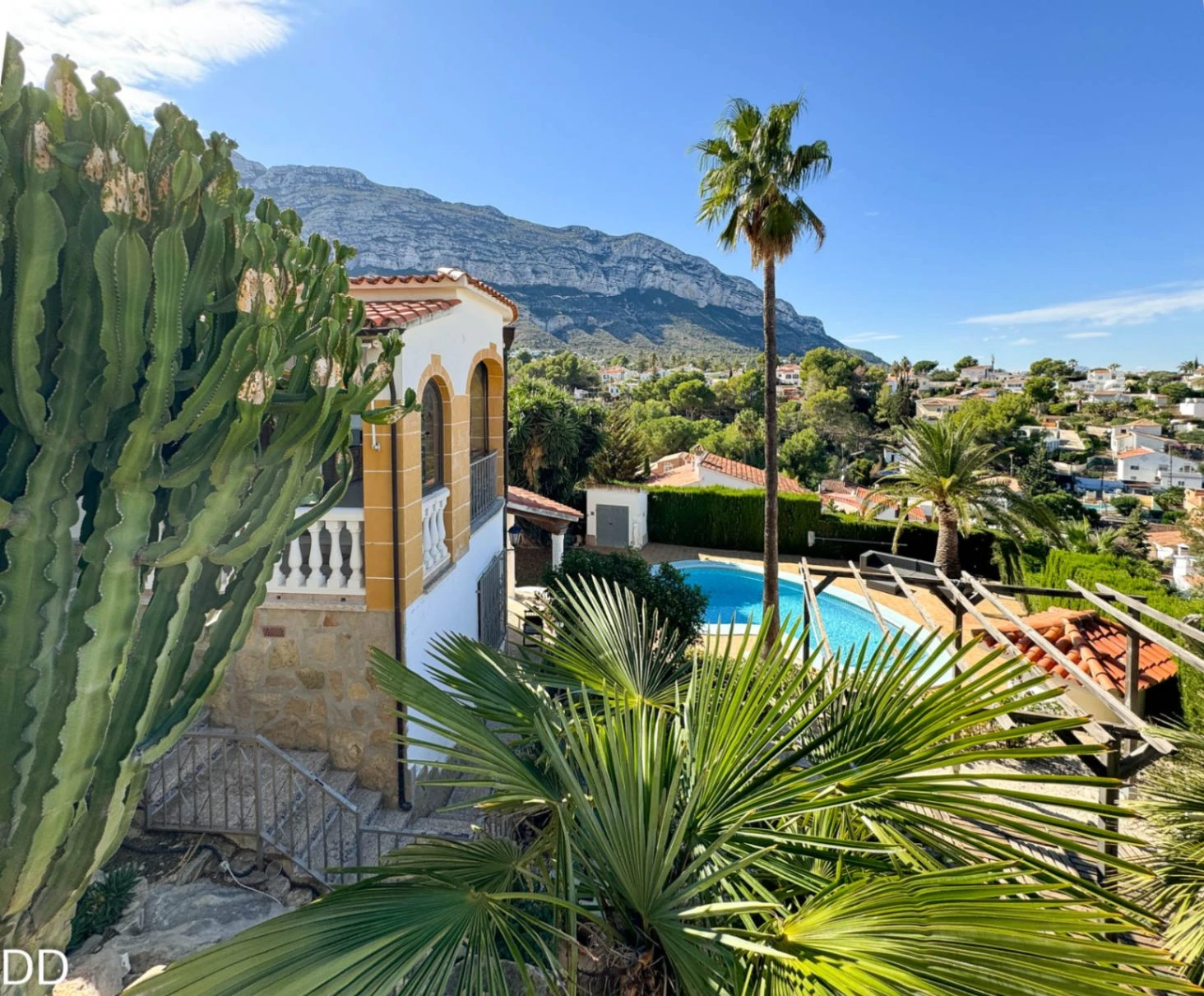 VILLA WITH PRIVATE POOL.The house is located 2.5 km from the center of Denia and 1.5 km from the Marineta Cassiana beach in Montgo, Florida Sol III part , very quiet residential area, culdesac. The house consists of two floors. The main floor has a fantastic glazed terrace with panoramic views, living room, separate kitchen with a pantry, two double bedrooms and a bathroom. The external staircase leads to the two independent houses on the ground floor; One of them consists of a small living room with an open plan kitchen, a double bedroom with a builtin wardrobe and a bathroom with shower. The other part of the ground floor is fitted out for housing with a bedroom and a bathroom with shower; a laundry room and a warehouse. The house offers you a rustic style in splendid mountain setting. The house is in good condition, although it needs some modernisation. The plot is very beautiful with a consolidated garden, it has several romantic corners, terraces, outdoor shower and a toilet. It is a good place to retreat and relax.It has covered parking.
