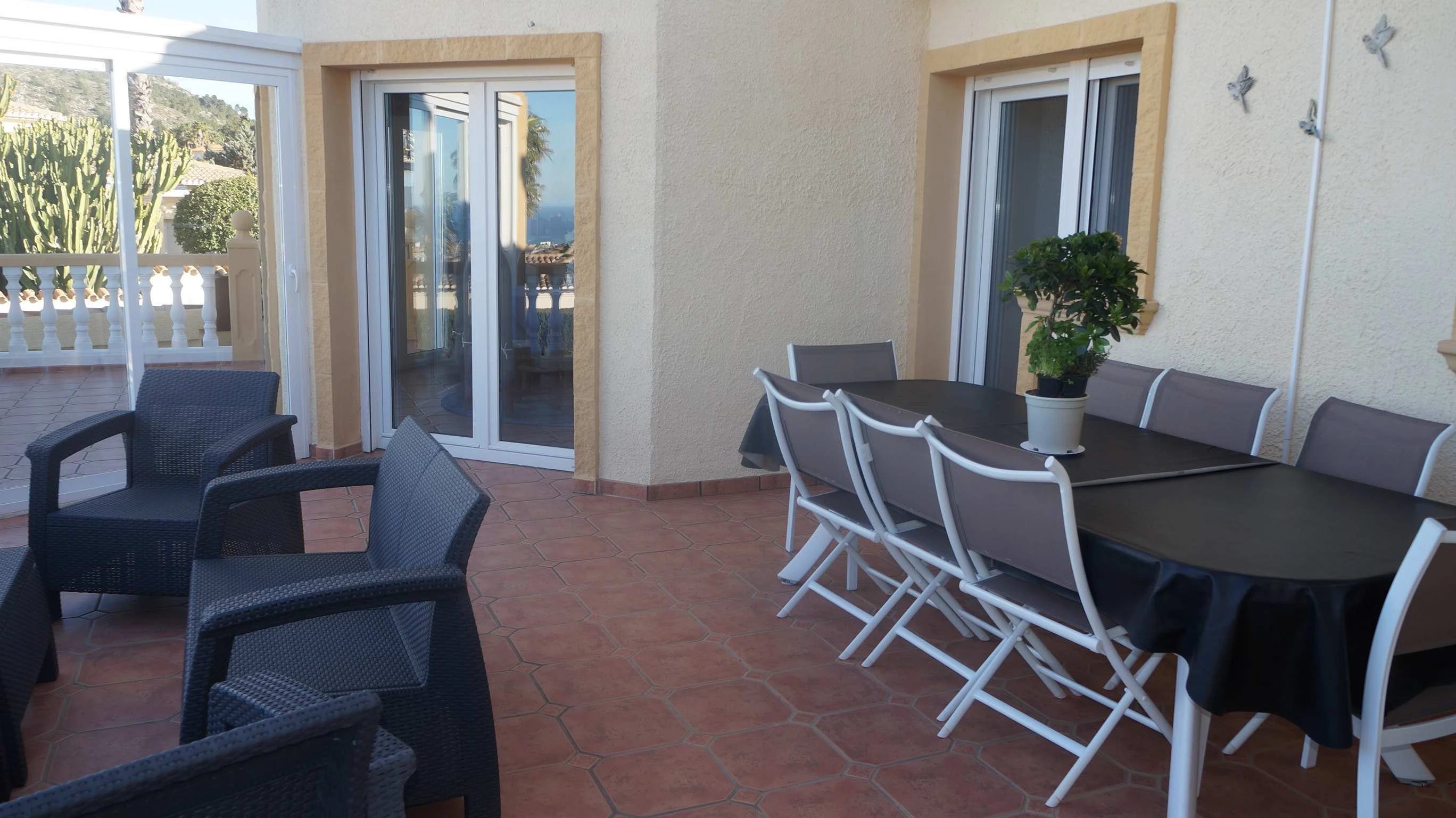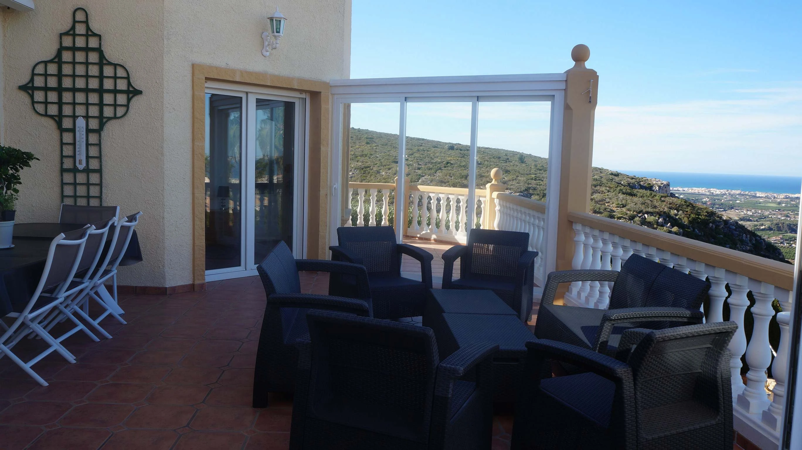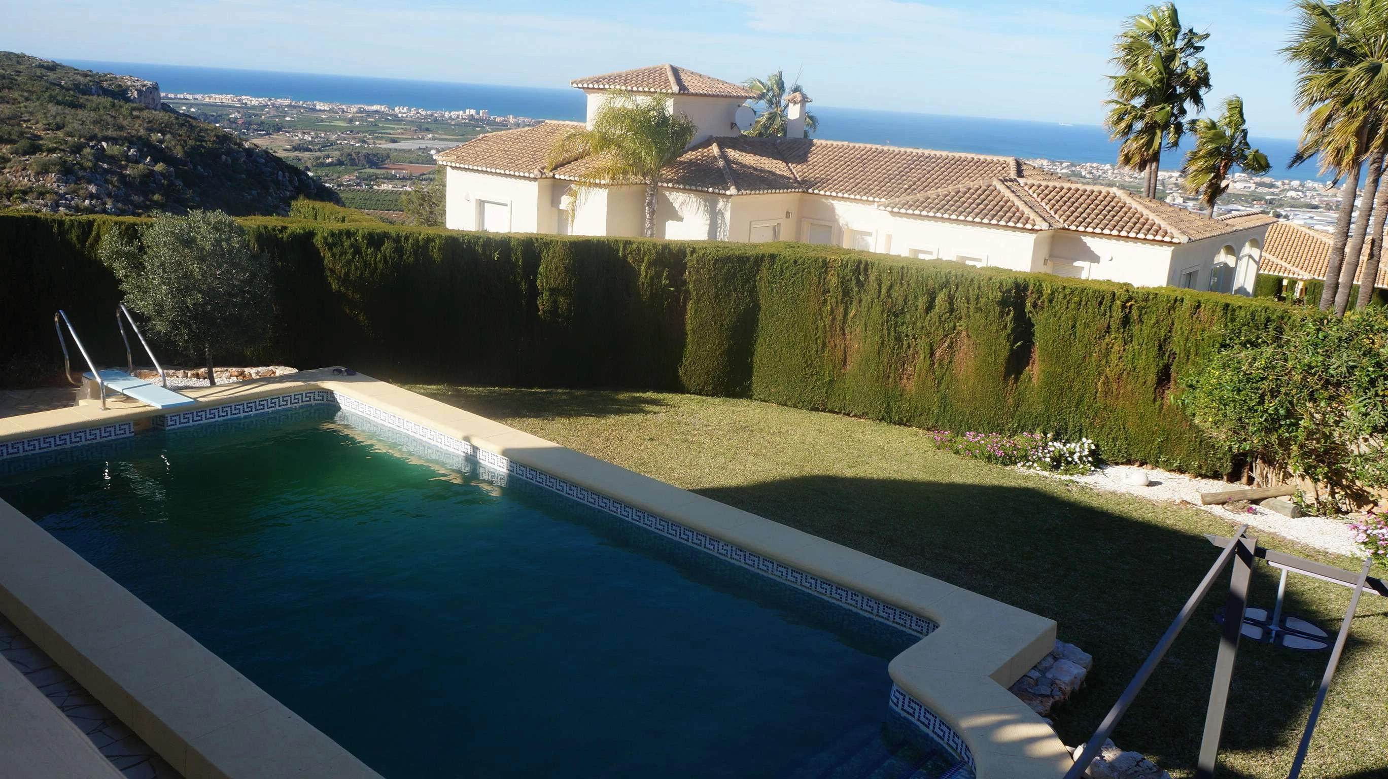Spacious villa with panoramic views to the mountain and the sea. It is distributed on two floors with two bedrooms in each of them, three comfortable bathrooms, kitchen with breakfast bar and summer kitchen to enjoy the spacious terraces and swimming pool. The garden has automatic irrigation and there is parking for three cars. The House has underfloor heating and air conditioning cold/heat. Quiet and high standing