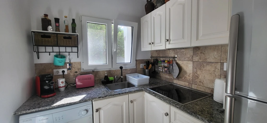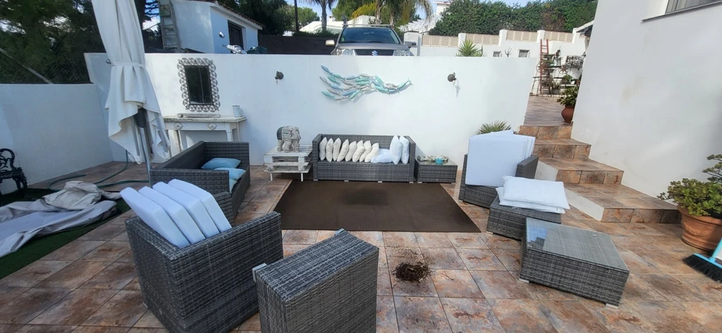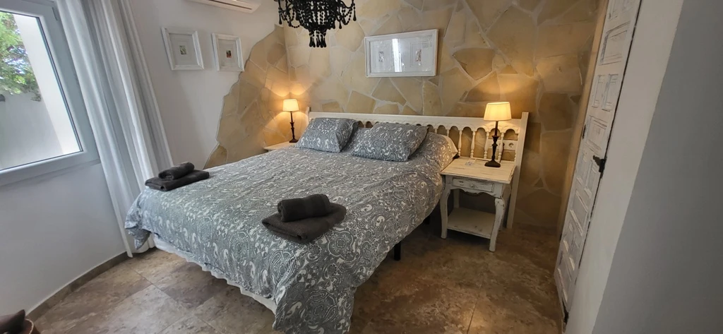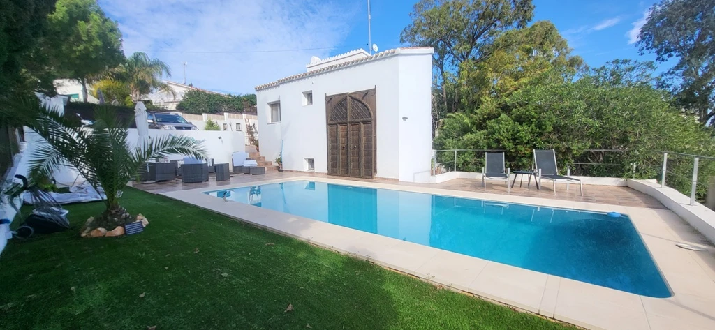 Beautiful villa with personality. This property has been renovated in 2018 and has an independent apartment with a bedroom, a bathroom, living room and kitchen. The main house is distributed in a large kitchen with dining room, living room, a large bathroom, two bedrooms one of which has a dressing room. On the plot there is a barbecue area in front of a beautiful porch, several terraces with rest areas and a beautiful swimming pool with open views of the Montgo natural park, parking area for two cars and storage room. If you like houses with personality and enjoy a quiet and sunny place, this is your option.