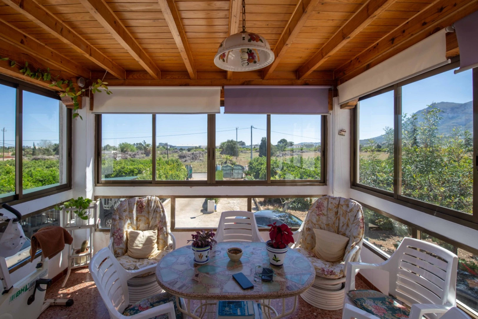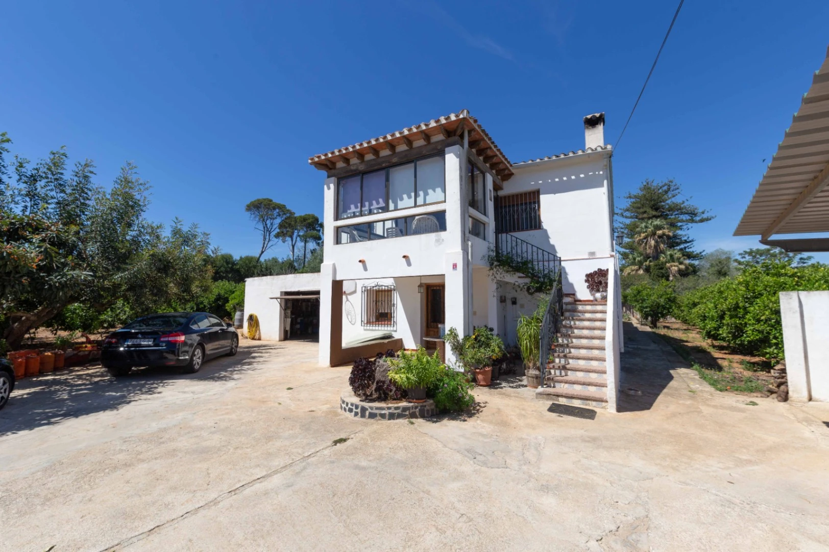 We present this villa in DENIA built on two floors on a rustic plot of 7,214 m2; among orange trees; Quiet, sunny area, very well connected and close to all services. On the ground floor there is a living room, 4 bedrooms, bathroom, laundry room and patio.The upper floor has a living room with fireplace, kitchenette, enclosed covered terrace, 3 bedrooms with fitted wardrobes, 2 bathrooms and solarium.It has a vegetable garden, garage, covered parking and barbecue. Distance to Dénia 1,5 kms.